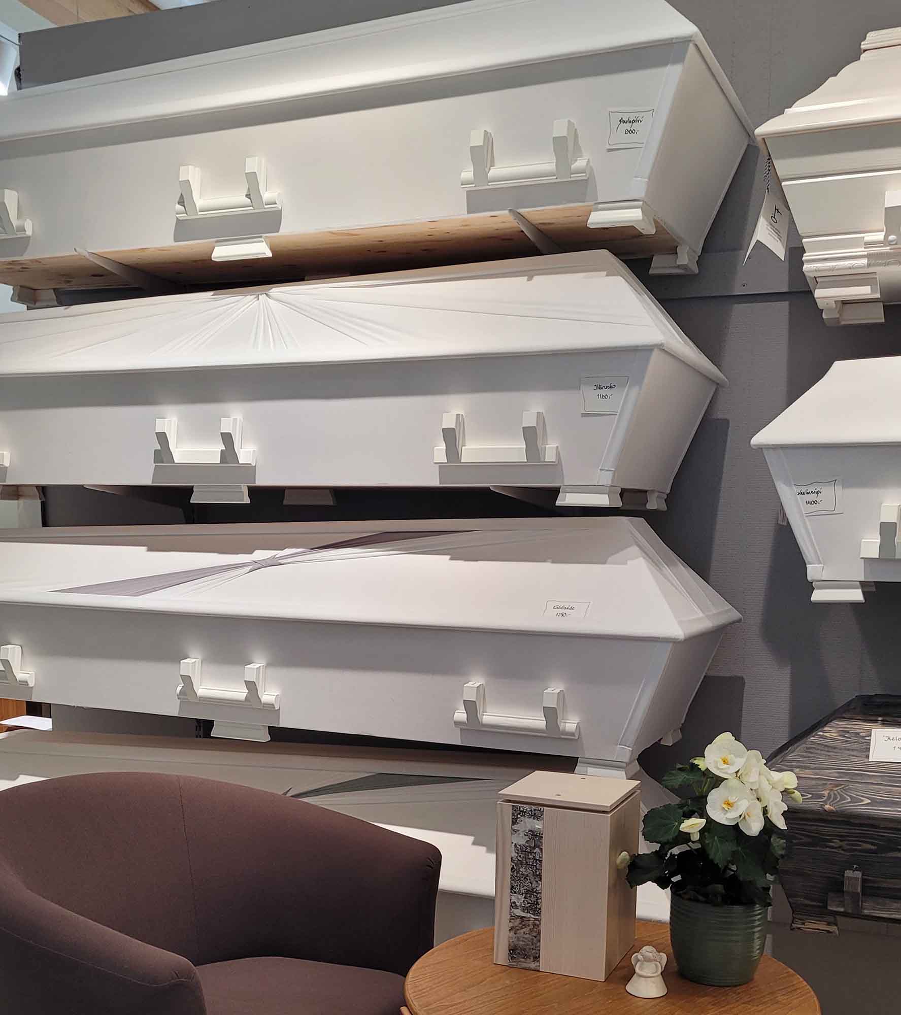 Läheisen hautaaminen on meitä jokaista liikuttava asia jossain elämämme vaiheessa. Tilaisuutena se on koskettava hetki, jolloin muistelemme poisnukkunutta yhdessä kaikkien läsnäolijoiden kesken. Kukin meistä haluaa tallentaa sen mieleensä herkkänä ja kauniina. Arkku on tärkeä osa tätä hetkeä, haluamme tarjota jokaiselle vainajalle hänen näköisensä leposijan. Toteutamme asiakkaiden toiveita yhdessä puuseppä Jari Lemisen kanssa. Näin syntyy yksilöityjä kokonaisuuksia.