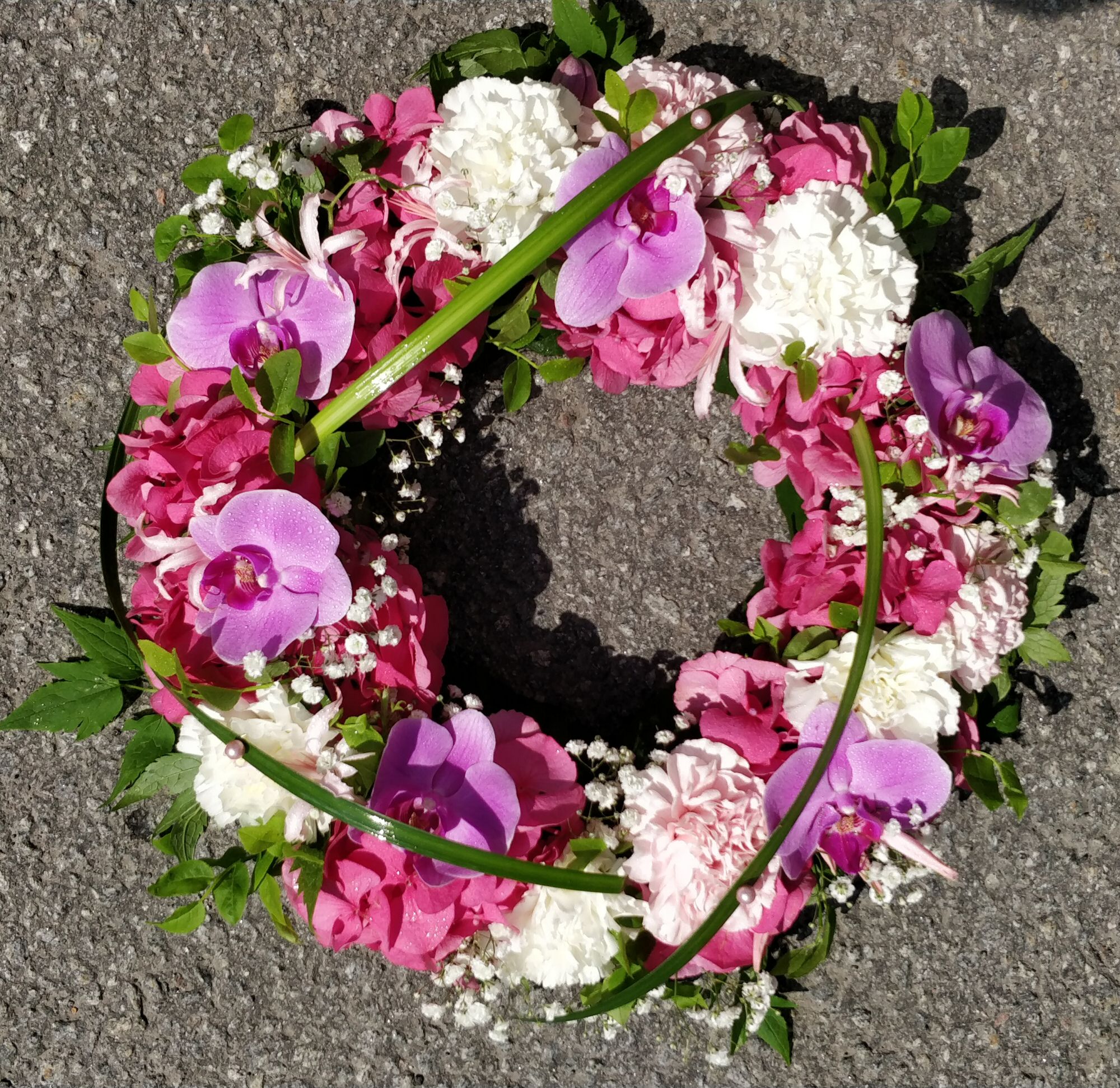 Halutessanne toteutamme herttaisissa sävyissä myös ruoka- tai kahvipöydän kukkakoristeet teemaan sopivaksi.